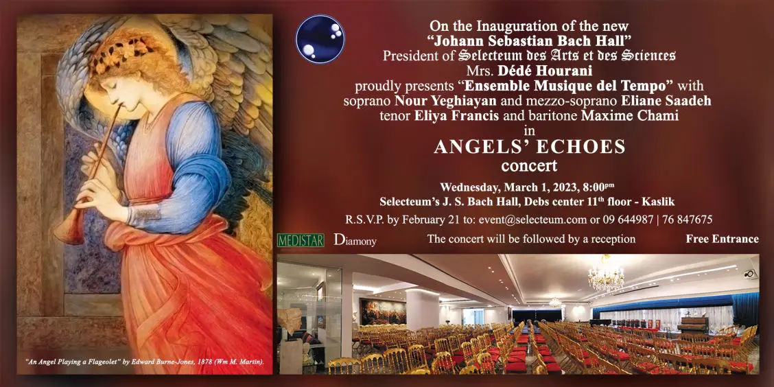 On the Inauguration of the new “Johann Sebastian Bach Hall” President of Selecteum des Arts et des Sciences Mrs. Dédé Hourani proudly presents “Ensemble Musique del Tempo” with soprano Nour Yeghiayan and mezzo-soprano Eliane Saadeh tenor Eliya Francis and baritone Maxime Chami